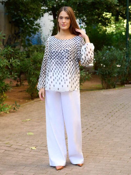 ΜΠΛΟΥΖΑ ΖΟΡΖΕΤΑ ΑΣΠΡΟΜΑΥΡΗ ΡΙΧΤΗ ΜΕ ΜΠΑΛΟΥΝ ΜΑΝΙΚΙ