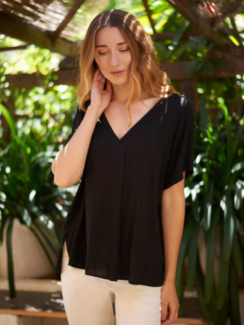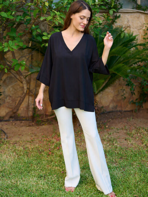 • PLUS SIZE ΜΠΛΟΥΖΑ V ΛΑΙΜΟΚΟΨΗ ΚΑΙ ΤΡΟΥΑΚΑΡ ΜΑΝΙΚΙ