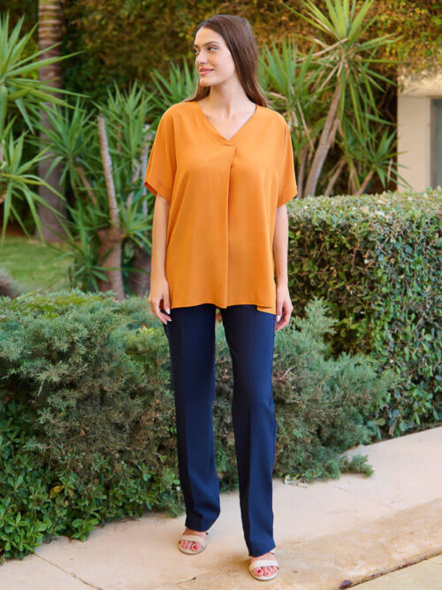 • ΜΠΛΟΥΖΑ TONE SUR TONE ΖΟΡΖΕΤΑ ΡΙΓΕ ΣΕ ΚΑΜΜΕΝΟ ΠΟΡΤΟΚΑΛΙ ΜΕ ΠΙΕΤΕΣ ΣΤΟΝ ΕΝΑΝ ΩΜΟ