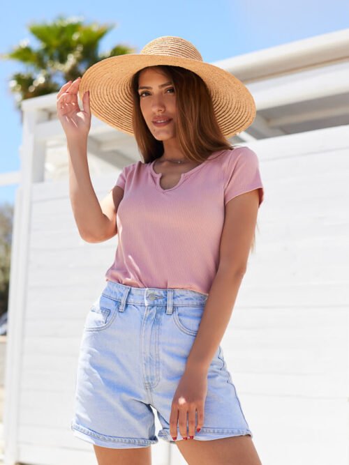 • ΜΠΛΟΥΖΑ ΒΑΜΒΑΚΕΡΗ ΤΡΟΥΑΚΑΡ – ΜΑΚΡΥΜΑΝΙΚΗ ΜΕ V ΛΑΙΜΟΚΟΨΗ ΣΕ ΠΑΣΤΕΛ ΑΠΟΧΡΩΣΕΙΣ
