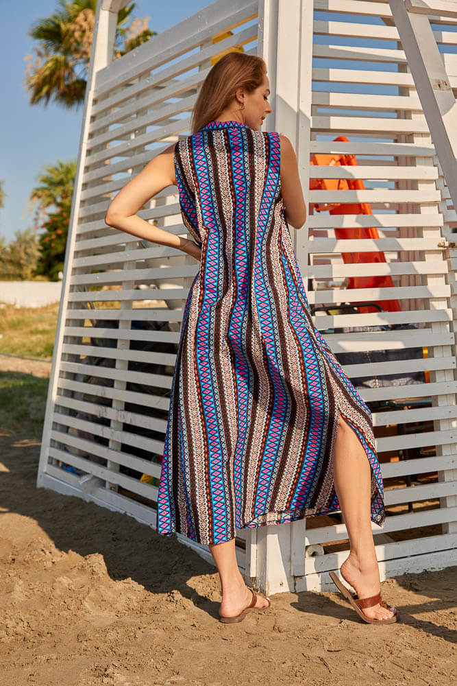 Η μόδα προωθεί την αιθέρια κίνηση που χαρακτηρίζει κάθε outfit για φέτος! Μάξι, ριχτό φόρεμα με ρυθμικότητα, με μανίκια που ακολουθούν την αιθεριότητα του style και λικνίζονται στο ίδιο τέμπο. Ύφασμα δροσερό, φιλικό στο σώμα,σε προδιαθέτει σε ένα πολύχρωμο και άκρως ενδιαφέρον καλοκαίρι. Αφαιρετικά μοτίβα μπλεγμένα με ενδιαφέρουσες αποχρώσεις μας καλωσορίζουν στο πιο vivid καλοκαίρι ενώ η αιθέρια κίνηση του δίνει τον ρυθμό για μια δροσερή εμφάνιση με fancy patterns και διάθεση!