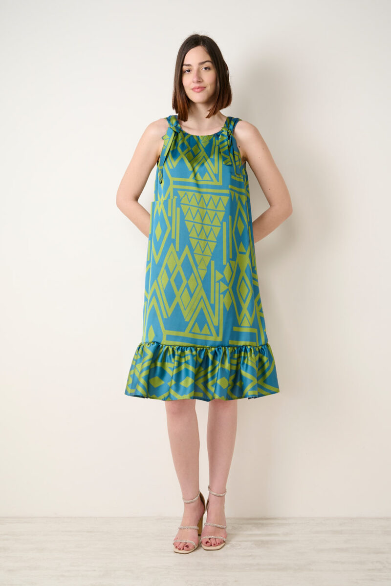 - Ριχτό, ίσιο φόρεμα μήκους 1,05 εκ. κ τελείωμα με βολάν