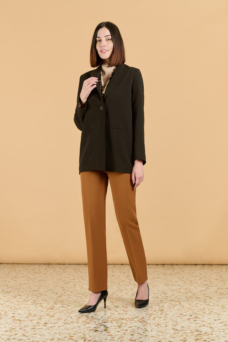 Υπάρχει και αντίστοιχο γιλέκο και παντελόνι στο ίδιο ύφασμα, για ολοκληρωμένο ντύσιμο, όπως επιτάσσει η μόδα για φέτος.Το απόλυτο keypiece που συμπληρώνει τέλεια κάθε εμφάνιση για το γραφείο , όσο και για μια απογευματινή ή βραδινή έξοδο σου.