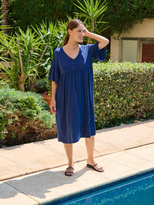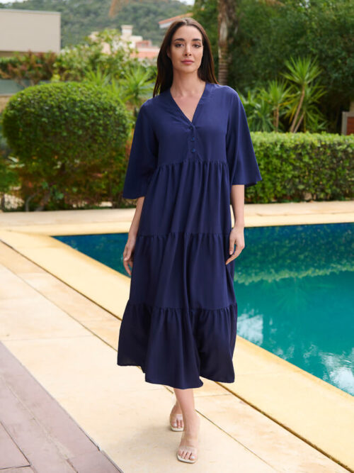 • ΦΟΡΕΜΑ ΜΑΞΙ ΒΙΣΚΟΖ ΣΕ ΜΠΛΕ ΣΚΟΥΡΟ ΛΑΧΟΥΡ ΡΙΧΤΟ ΜΕ ΚΟΝΤΟ ΜΑΝΙΚΙ ΚΑΙ ΒΟΛΑΝ