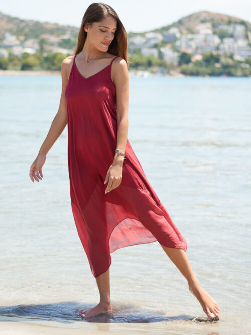 • PLUS SIZE ΜΑΞΙ ΒΙΣΚΟΖ ΦΟΡΕΜΑ ΚΑΦΤΑΝΙ ΜΕ ΜΠΟΡΝΤΟΥΡΑ