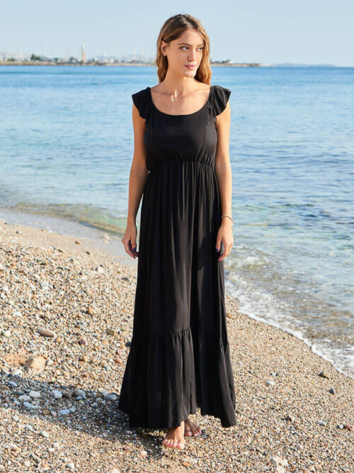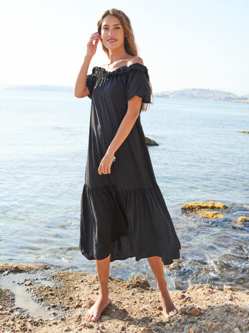 • ΦΟΡΕΜΑ PLUS SIZE ΜΑΞΙ ΣΑ ΚΑΦΤΑΝΙ ΣΕ ΑΣΠΡΟΜΑΥΡΟ ΦΟΝΤΟ