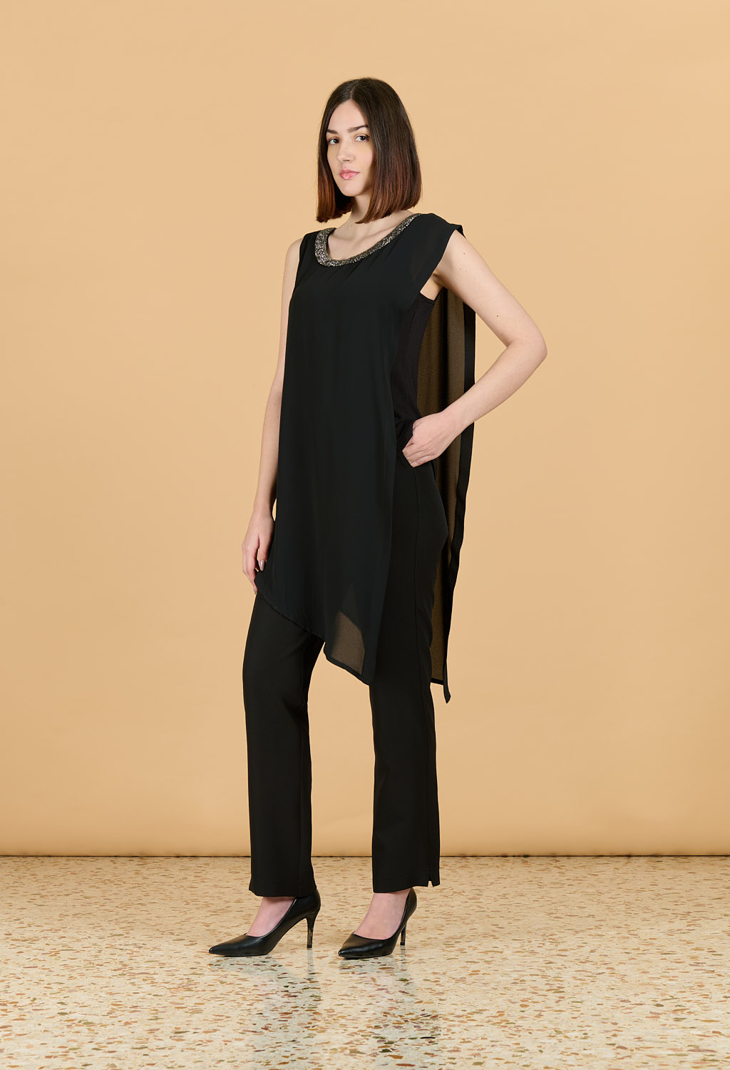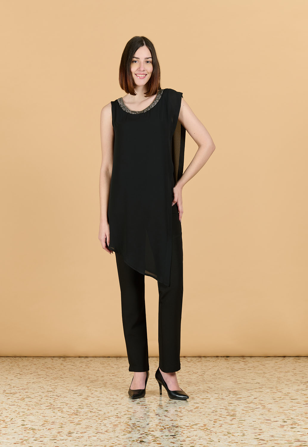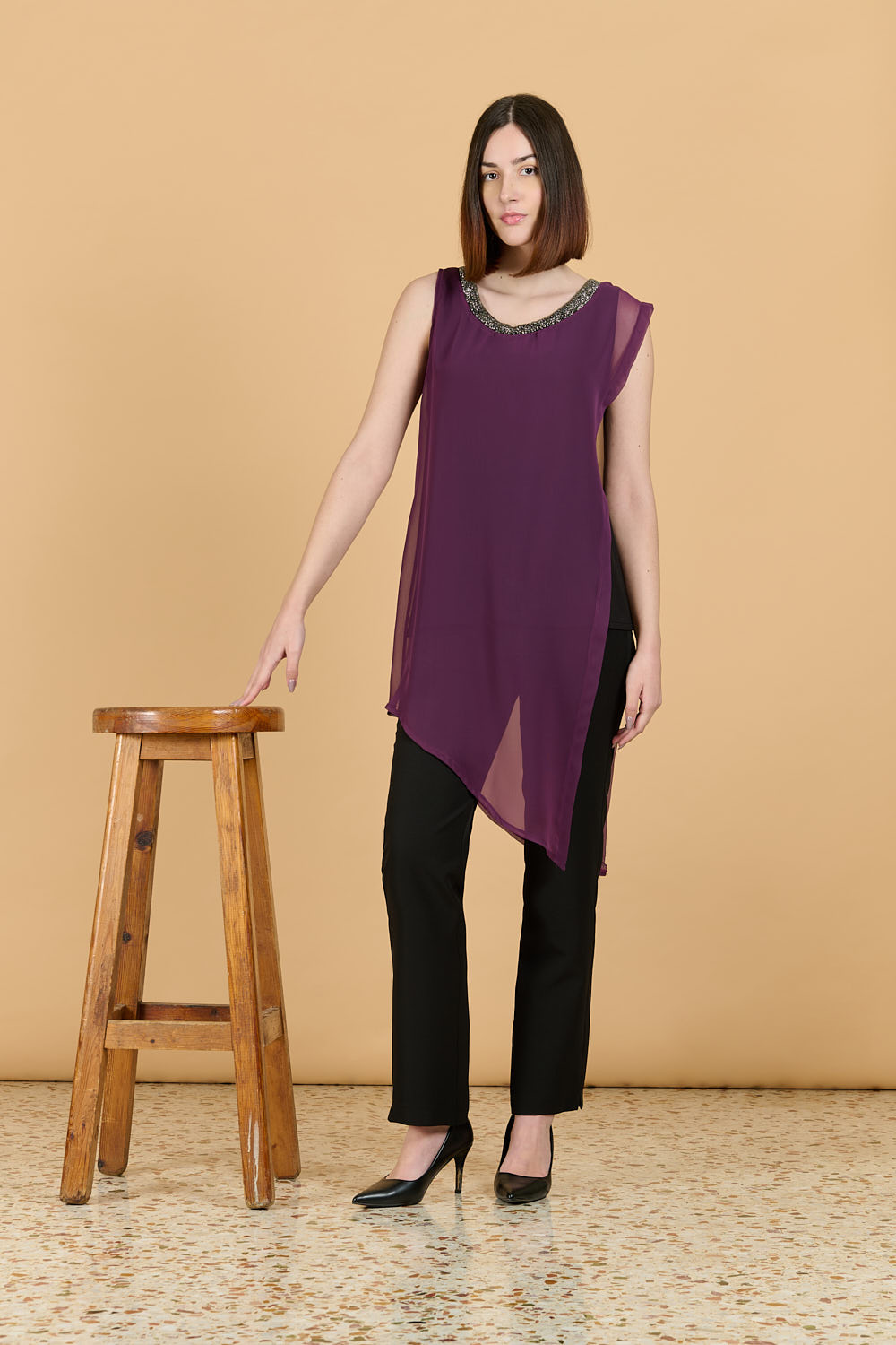Τουνίκ ζορζέτα με ασύμμετρο τελείωμα