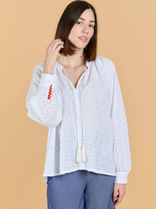 • ΜΠΛΟΥΖΑ ΠΟΥΚΑΜΙΣΟ ΜΕ ΤΡΟΥΑΚΑΡ ΜΑΝΙΚΙΑ ΚΑΙ ΜΑΟ ΓΙΑΚΑ