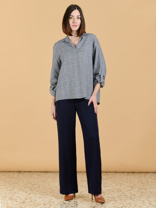 • ΜΠΛΟΥΖΑ PLUS SIZE ΣΕ ΣΑΤΕΝ ΡΙΓΕ ΜΕ V ΛΑΙΜΟΚΟΨΗ ΤΡΟΥΑΚΑΡ ΜΑΝΙΚΙ