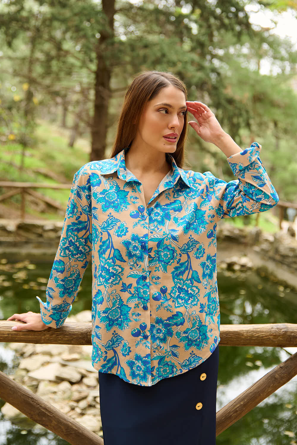 ΠΟΥΚΑΜΙΣΟ ΒΑΜΒΑΚΕΡΟ ANASTASIO ΤΥΠΩΜΑ ΜΕ ΜΑΟ ΓΙΑΚΑ ΡΙΓΕ ΣΕ LOOSE ΓΡΑΜΜΗ ΜΕ BALLOON ΜΑΝΙΚΙΑ