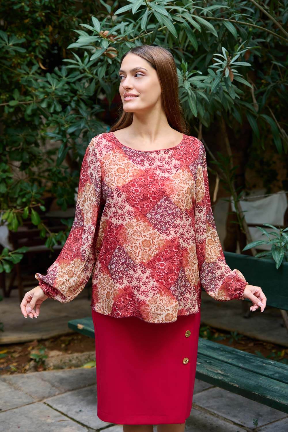 ΜΠΛΟΥΖΑ ΜΕ ΓΕΩΜΕΤΡΙΚΑ ΣΧΕΔΙΑ ΣΕ ΣΑΤΕΝ ΜΕ ΑΝΑΛΑΦΡΟ ΜΑΝΙΚΙ