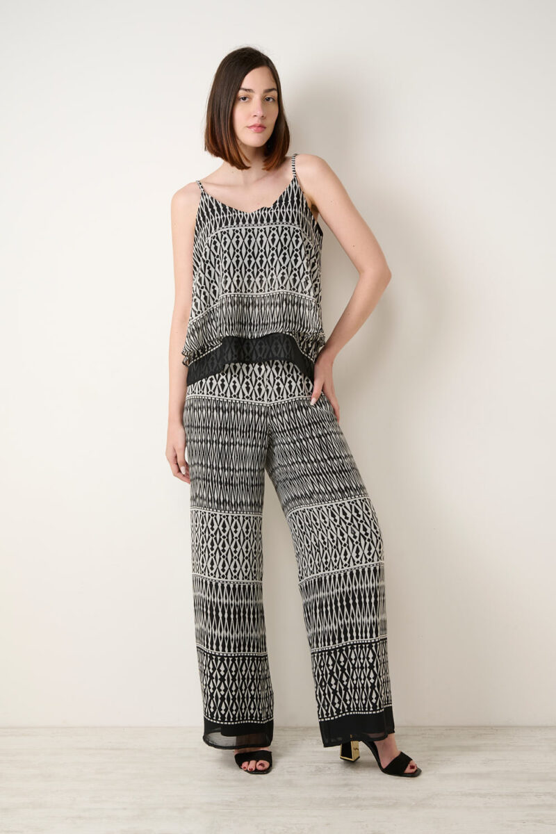 Η συγκεκριμένη ανάλαφρη, ριχτή παντελόνα φιλοξενεί μια σαγηνευτική κίνηση. Δημιούργησε την εμφάνιση που σε αντιπροσωπεύει και εντυπωσίασε! Ύφος που φέτος διεκδικεί τα σκήπτρα στις πιο popular τάσεις. Μια ατελέσφορη αίσθηση σε delicated αισθήσεις. Μία άκρως δροσερή παντελόνα, που μπορεί να φορεθεί τόσο σε μία καθημερινή εμφάνιση, καθώς και στο γραφείο, όσο και σε μία απογευματινή έξοδο με τα κατάλληλα αξεσουάρ. Άνετη, κομψή, θα γίνει το αγαπημένο σου ρούχο σε κάθε έξοδο! Είναι χιτή και απεμπολεί λάμψη, κίνηση και αισθησιασμό.(Σαφώς υπάρχει και το δικό του τοπ με κωδικό 21574 Z2 εάν το επιθυμείτε για να το κάνετε ΣΕΤ για ολοκληρωμένο ντύσιμο, όπως επιτάσσει η μόδα για φέτος).