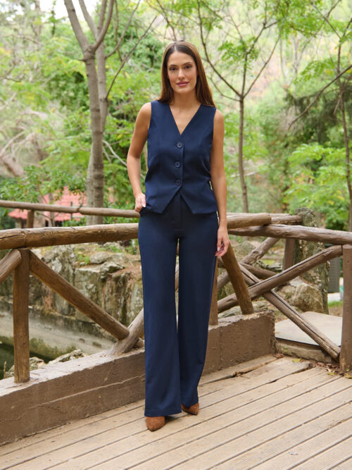 • ΠΑΝΤΕΛΟΝΙ WIDE LEG ΣΕ ΜΠΛΕ ΜΕΛΑΝΖΕ ΨΗΛΟΜΕΣΟ ΜΕ ΠΙΕΤΕΣ