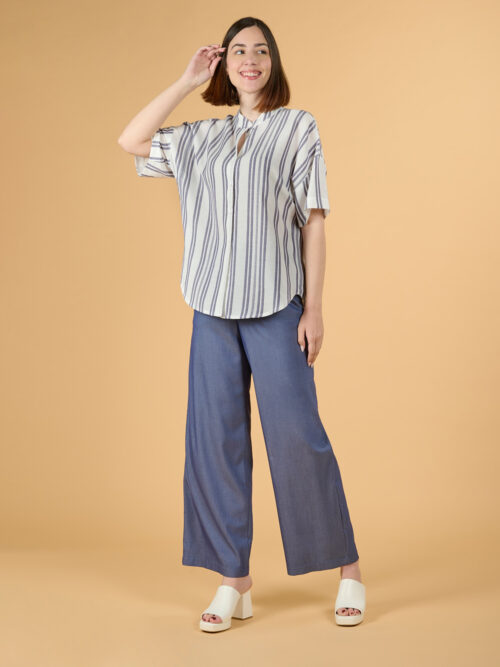 ΠΟΥΚΑΜΙΣA PLUS SIZE ΛΕΥΚΗ ΜΕ ΜΠΛΕ ΒΑΜΑΚΕΡΟ ΡΙΓΕ ΜΕ ΜΑΟ ΓΙΑΚΑ Κ ΚΟΝΤΟ ΜΑΝΙΚΙ