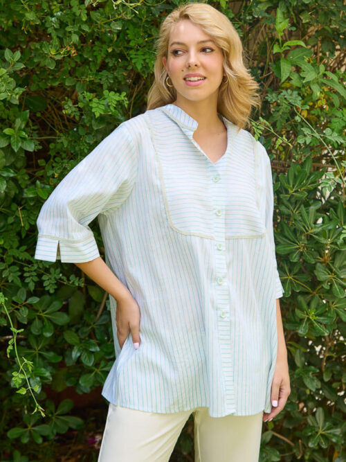 • ΠΟΥΚΑΜΙΣΑ ΒΑΜΒΑΚΕΡΗ ΣΕ ΡΙΓΕ ΓΚΡΙ ΑΡΖΑΝ ΜΕ ΜΠΛΕ ΛΕΠΤΟΜΕΡΕΙΕΣ ΚΑΙ ΜΑΟ ΓΙΑΚΑ