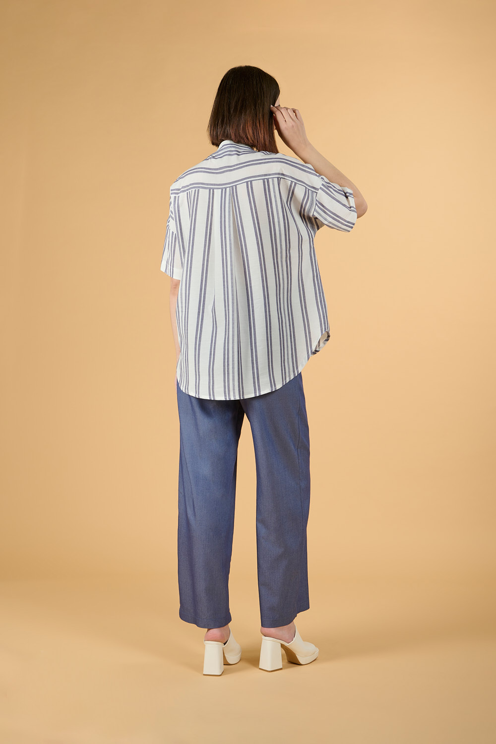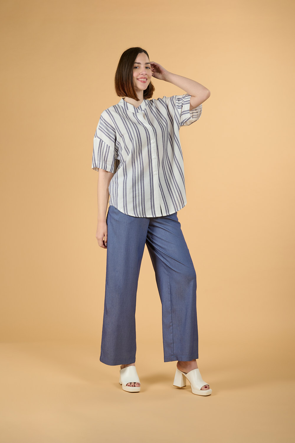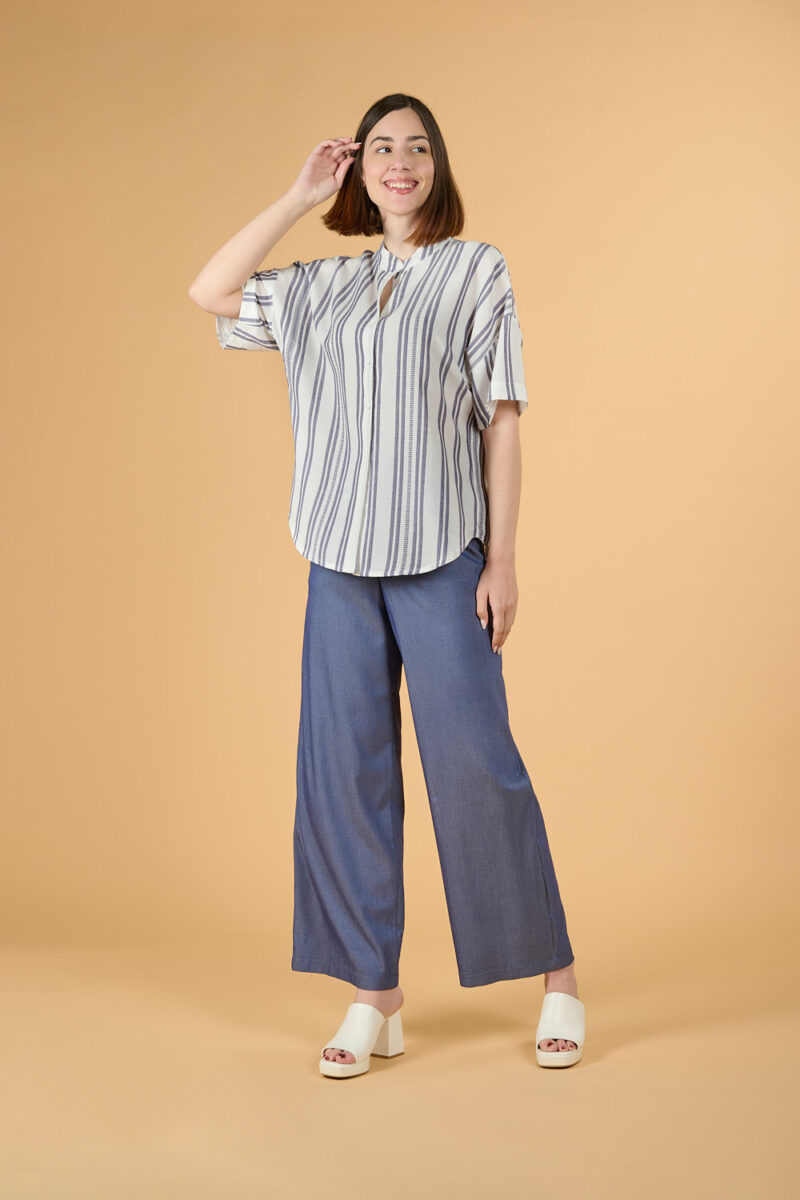 • Άνετη ριχτή πουκαμίσα με ΜΠΛΕ ρίγα