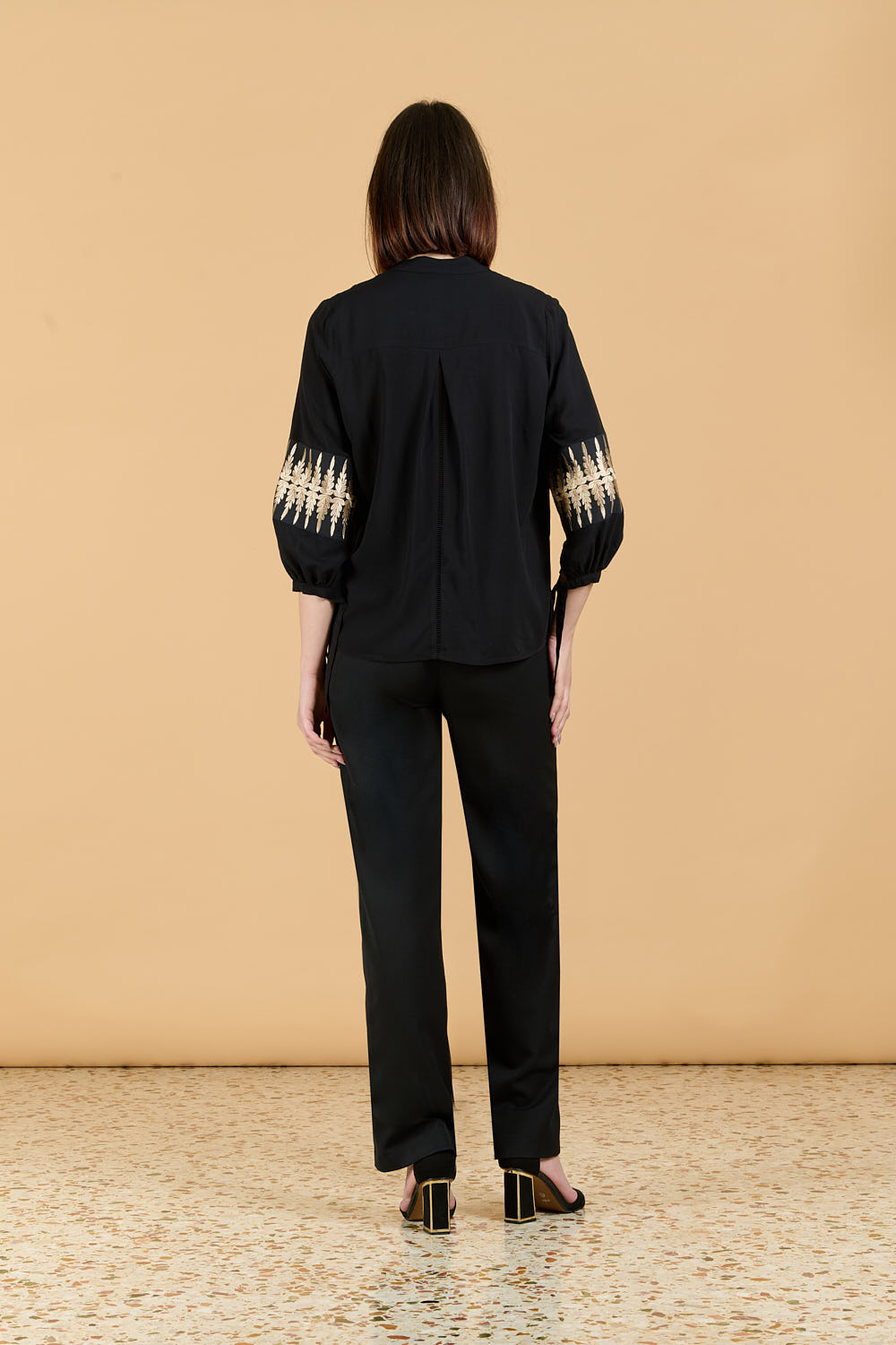 - Πλάτη με κουφόπιετα πίσω και διακοσμητικό ΑΖΟΥΡ σε μαύρο χρώμα