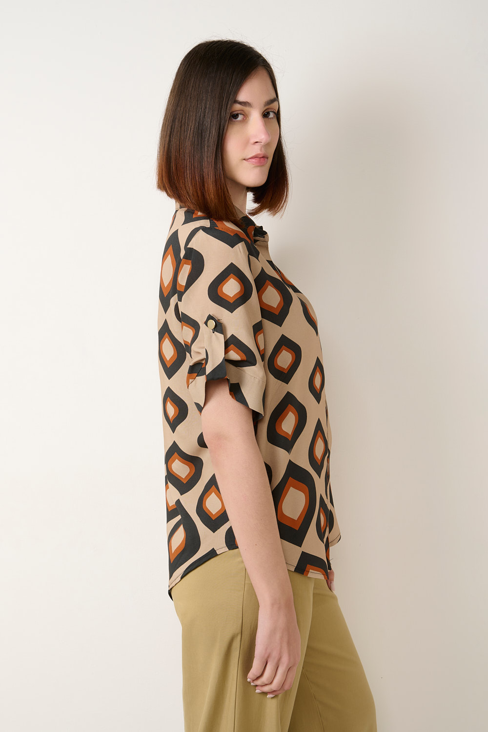 • Κοντό μανίκι με μανσέτες με διακοσμητικό χρυσό κουμπί