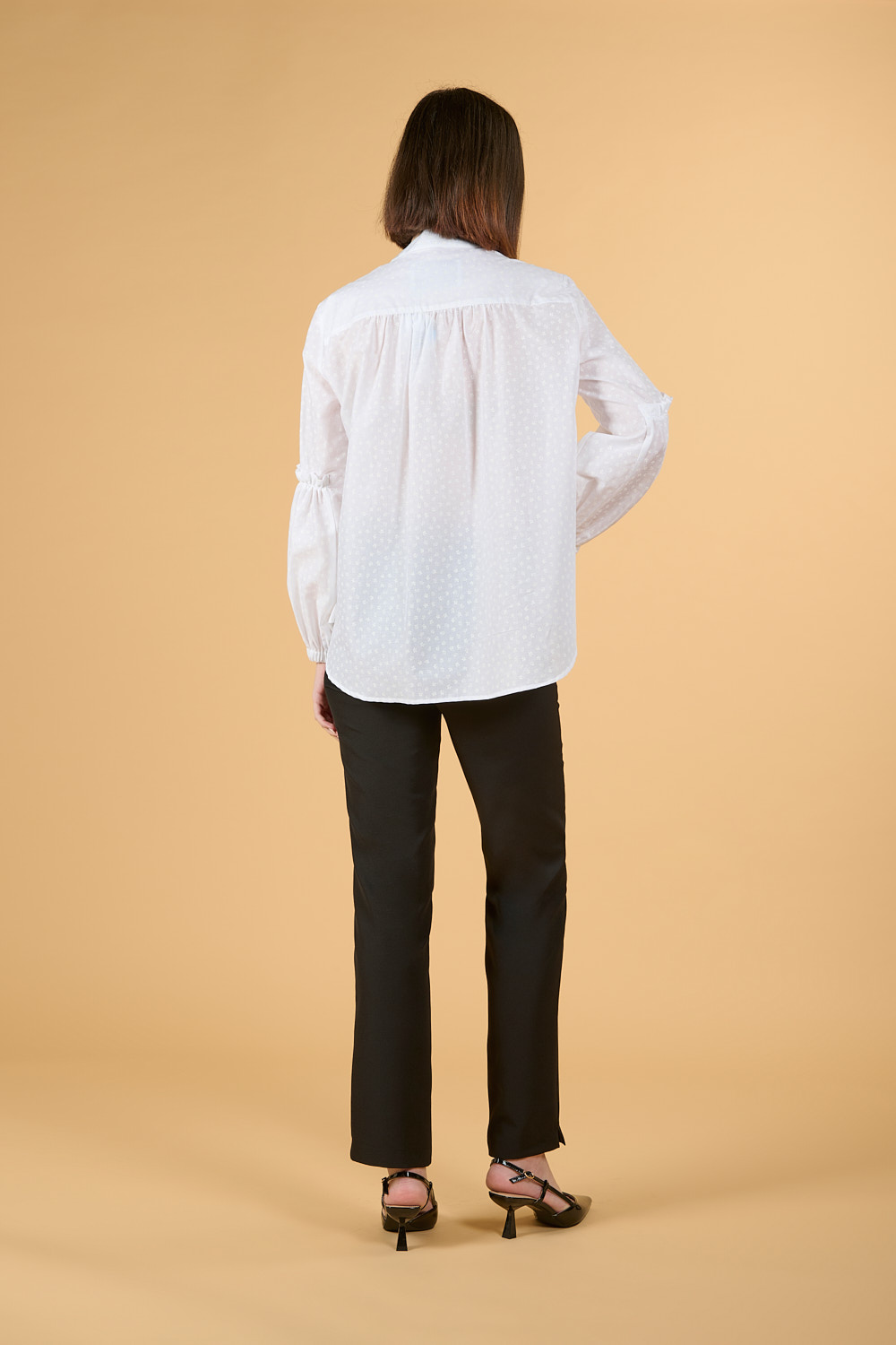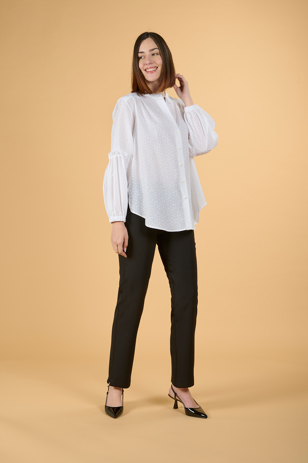 ΠΟΥΚΑΜΙΣΟ ΒΑΜΒΑΚΕΡΟ DEVORE ΨΙΛΟ ΑΝΘΑΚΙ ΜΕ ΜΑΟ ΓΙΑΚΑ ΣΕ LOOSE ΓΡΑΜΜΗ ΜΕ BALLOON ΜΑΝΙΚΙΑ