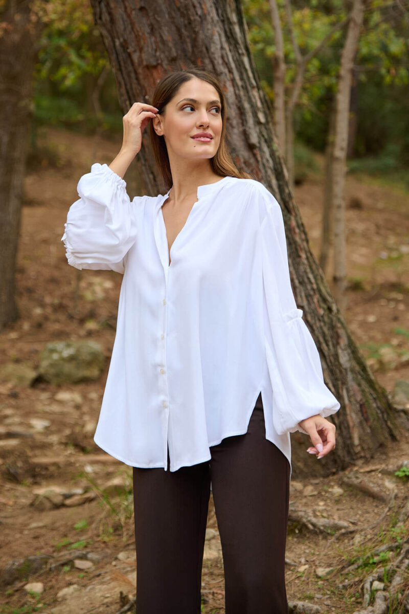 ΠΟΥΚΑΜΙΣΟ ΒΑΜΒΑΚΕΡΟ ΜΕ ΜΑΟ ΓΙΑΚΑ ΣΕ LOOSE ΓΡΑΜΜΗ ΜΕ BALLOON ΜΑΝΙΚΙΑ