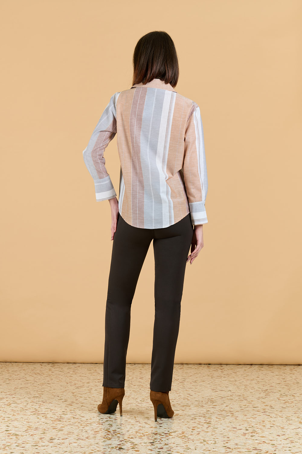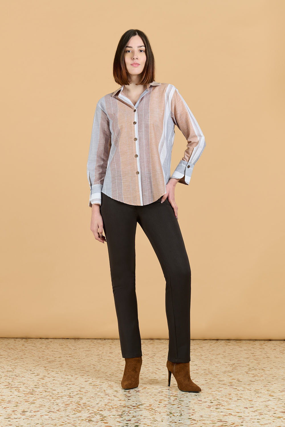 Μια ατελέσφορη αίσθηση σε όμορφη ριγέ παλέτα σε καφέ αποχρώσεις και delicated αισθήσεις. Άνεση και κομψότητα σε loose γραμμή, θα συντροφεύσουν κάθε συνδυασμό δίνοντας elegant χαρακτήρα στην εμφάνιση. Ιδιαίτερη αναφορά φέτος στα βαμβακερά υφάσματα, που κυριαρχούν πλέον στις φετινές τάσεις. Μια επιλογή που θα δεσπόσει στην καθημερινότητά σου. Φόρεσέ το τόσο στο γραφείο, όσο και για μια βραδινή έξοδο σου. Μην περιμένετε άλλο και προσθέστε αυτό το must-have κομμάτι στην γκαρνταρόμπα σας!