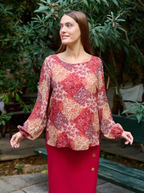 • ΜΠΛΟΥΖΑ ΒΑΜΒΑΚΕΡΗ ΡΙΓΕ ΜΕ ΚΟΚΚΙΝΕΣ ΛΕΠΤΟΜΕΡΕΙΕΣ ΚΑΙΙΔΙΑΙΤΕΡΟ ΜΑΝΙΚΙ