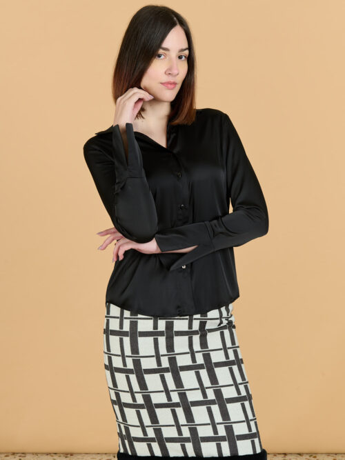 • ΠΟΥΚΑΜΙΣΟ ΣΑΤΕΝ ΓΚΡΙ ΜΑΥΡΟ ΚΑΡΟ ΣΕ LOOSE ΓΡΑΜΜΗ