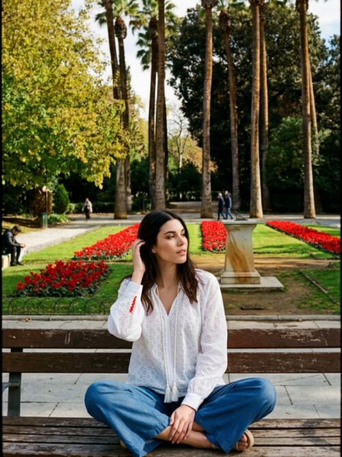 • ΜΠΛΟΥΖΑ BOHO ΣΕ ΕΜΠΡΟΝΤΕΡΥ ΒΑΜΒΑΚΕΡΟ ΥΦΑΣΜΑ